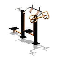 Конструкция тренажера – сборная. Основной элемент – опорный столб с установочной платформой. На неё устанавливают ручки, и крепят их сварными швами и болтами. Дополнительно конструкция имеет дистанционную штангу с вращающимся механизмом. Для удобства использования она оборудована платформой из пластика. Выполнять упражнения на тренажере безопасно, так как рукоятки оснащены атмосферостойким пластиком.